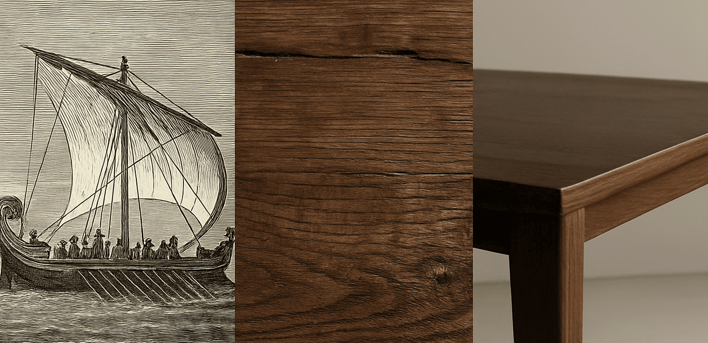В античной Италии дерево было не просто строительным ресурсом — оно считалось символом выносливости, свободы и путешествия. Корабельные доски из тика, дуба, каштана и ясеня проходили через огонь, воду и ветра. Их прочность, сложная структура волокон, мастерские соединения без единого гвоздя — всё это стало фундаментом будущей мебельной эстетики Средиземноморья.