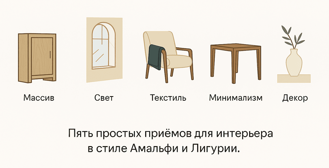 Закройте глаза и представьте себе: утро на Амальфи. Лучи солнца мягко играют на белёных стенах виллы, солёный бриз доносит запах моря, а вдали — силуэты старинных рыбацких лодок. Здесь, в окружении средиземноморских садов и старых каменных улиц, мебель становится неотъемлемой частью архитектуры и образа жизни. Старинные столы из массива передаются по наследству, каждый стул и буфет помнит голоса прошлых поколений, каждое изделие несёт отпечаток руки мастера.